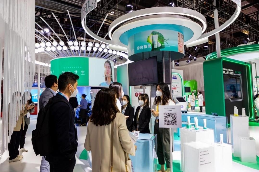 此外,倡导“绿色精简”的Freeplus芙丽芳丝、关爱女性的laurier乐而雅等品牌都在进博会现场进行了产品展示和试用装派发,人气颇高,场面精彩纷呈。来访者通过专业讲解、功能点实验展示等,更深层次地体会到了花王产品的独特魅力。不仅是线下,花王还通过微信小程序对参展情况进行介绍和直播,增进了广大线上观众的参与度。