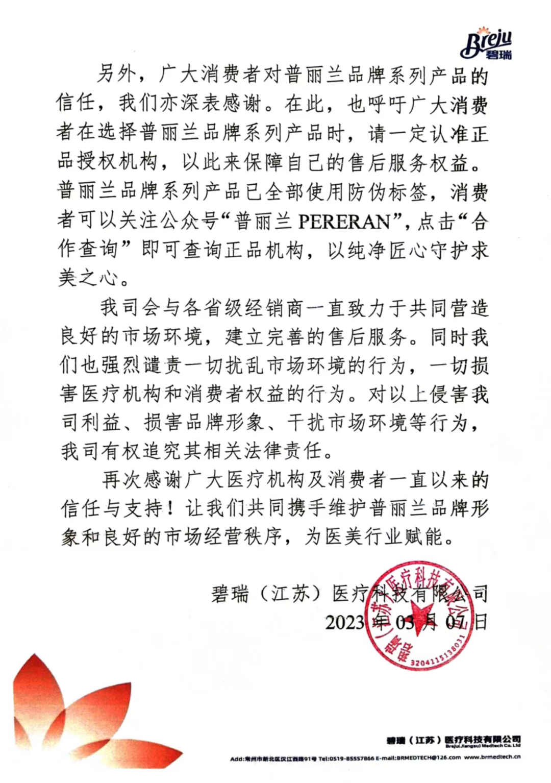 官方声明 | 关于普丽兰品牌防伪验真查询