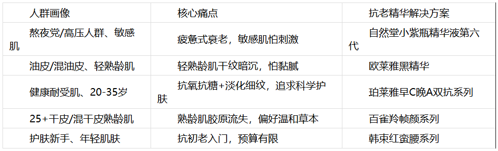 •若你是熬夜党/高压人群,有松垮、暗沉、细纹等疲惫式衰老问题,或敏感肌想温和抗老,优先选择自然堂小紫瓶第六代,依托品牌25年科研与原料积淀,在改善疲惫式衰老的同时,兼顾修护与焕亮,全肤质适配且质价比突出;