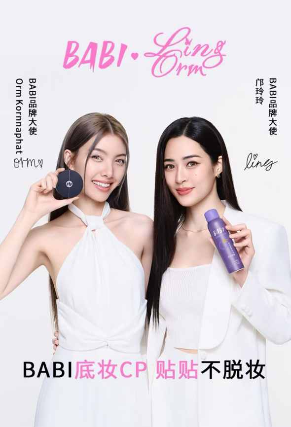 2024年11月11日,新锐美妆品牌BABI芭必正式官宣泰国影视新星LING(邝玲玲)、ORM(珙恩娜帕·瑟塔拉塔那彭)成为品牌大使。